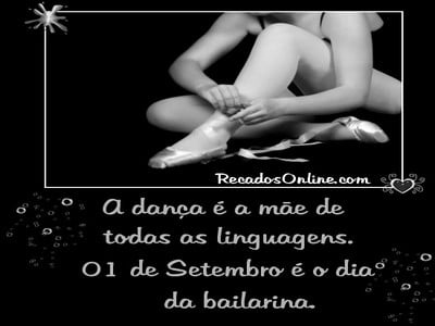 1 de setembro-dia da bailarina. Parabéns pois hoje é seu dia, dia desta profissão tão linda e mágica com passos sensacionais. Continue sendo esta pessoa maravilhosa.