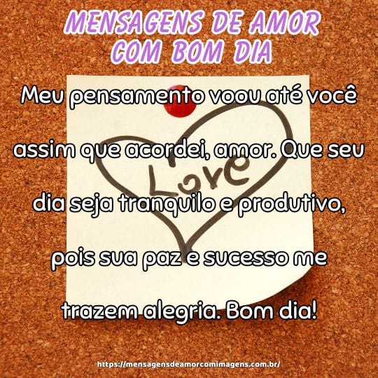 Que a sua manhã comece leve e cheia de alegria, coração. Envio todo meu carinho, pois pensar em você me enche de energia boa logo cedo.