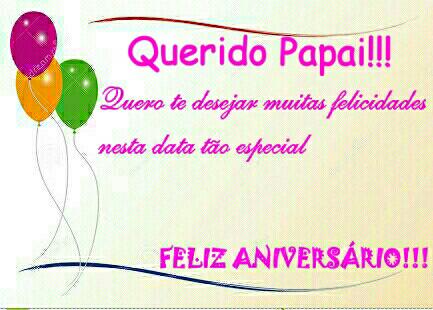 Parabens papai pelo seu aniversario!! Quero que esta data seja inesquecível para todos nós para que possamos comemorar muitas outras vezes este dia tão especial.