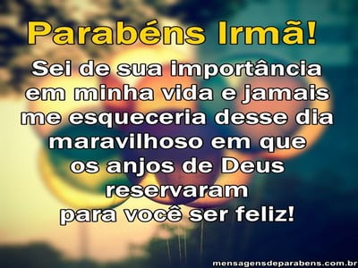 Iníciomsg dia do irmaodia do irmão-parabens irmã queridadia do irmão-parabens irmã queridaPor Mensagens Lindas / msg dia do irmaodia do irmão-parabens irmã querida. Minha amada irmã, agradeço por você fazer parte da minha vida, por estar ao meu lado em todos os momentos.