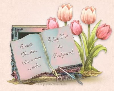 feliz dia dos professores com muito amor. Ser professor é um dom de Deus, pois é preciso ter paciência e muito amor pelo que faz, pois as dificuldades são grandes, mas a recompensa é ver uma criança ou um adulto feliz ao aprender à ler.