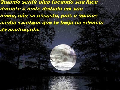mensagem com saudades Quando sentir algo tocando sua face durante a noite deitada em sua cama, não se assuste, pois é apenas minha saudade que te beija no silêncio da madrugada.