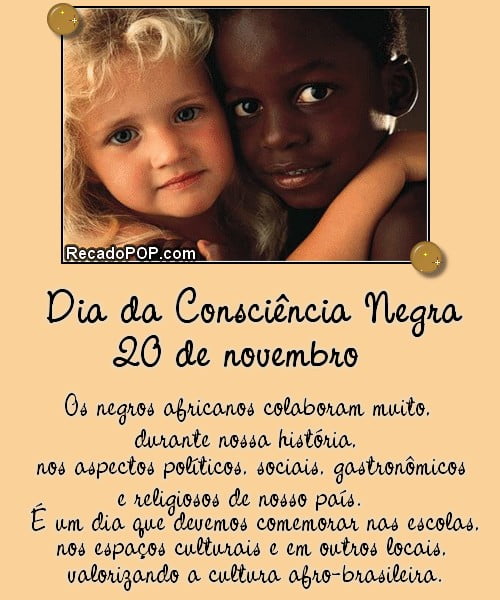 mensagem consciencia negra somos todos iguais. O preconceito deve ser abolido da sociedade pois somos todos irmãos não importando nossa aparência física, cor ou local em que moramos.