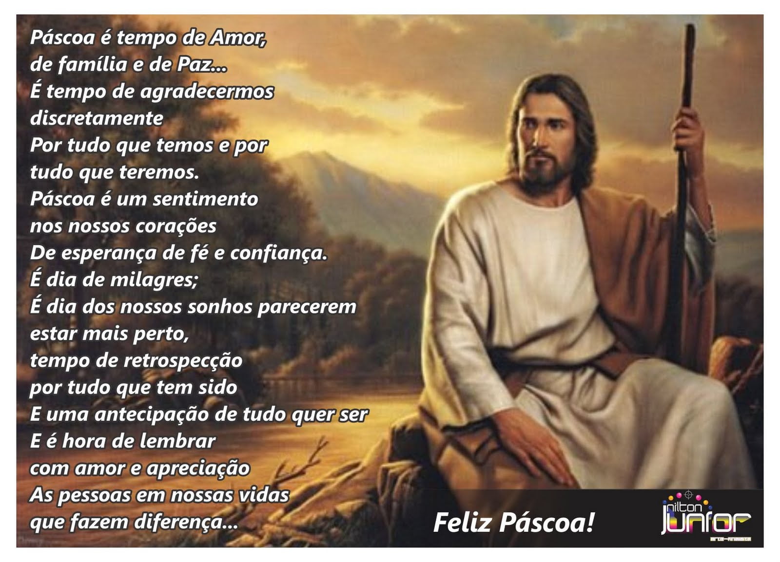 mensagem feliz pascoa com ressurreição de Jesus. Páscoa é tempo de amor, paz, felicidade, momento familiar. Desfrute todos estes momentos maravilhosos ao lado de sua familia e amigos.