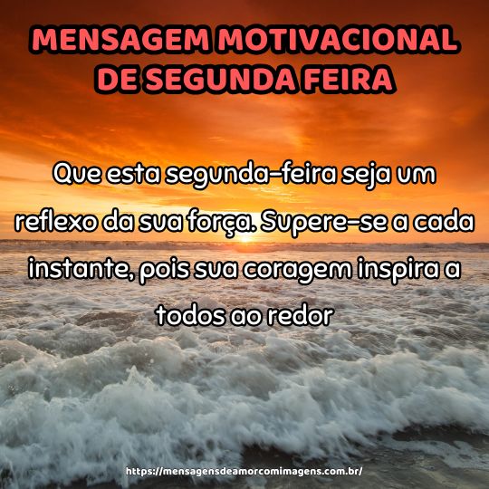 Que esta segunda-feira seja um reflexo da sua força. Supere-se a cada instante, pois sua coragem inspira a todos ao redor.