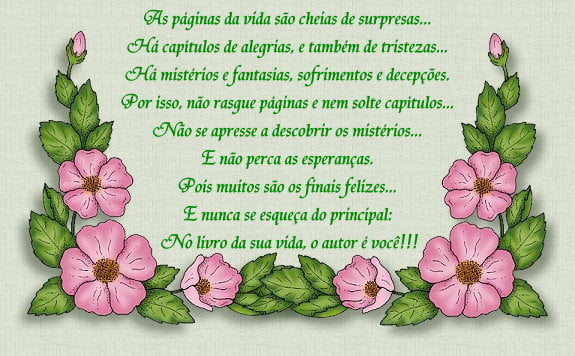 mensagem otimismo livro da vida escrito por você. Nossa vida contém belas páginas, E você escreve os capítulos à cada dia deixando o livro lindo e perfeito.