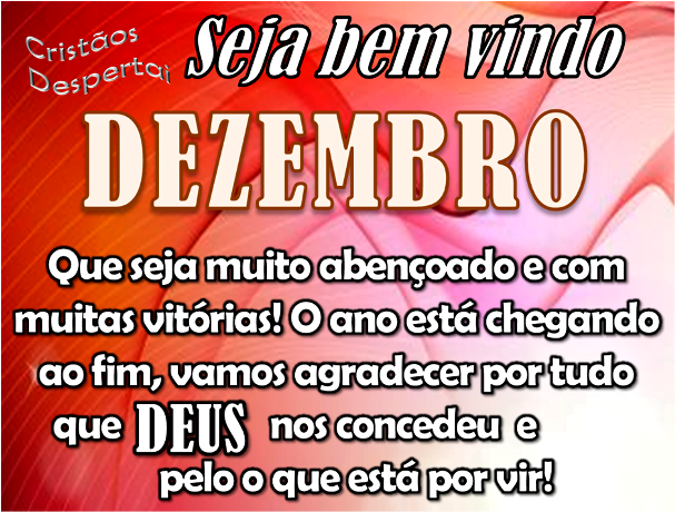 mensagem seja bem vindo dezembro. Novembro está chegando ao seu final, e dezembro está chegando repleto de alegrias. Viva cada segundo com muito otimismo. Neste mês de dezembro busque seus sonhos com confiança e alegria. Deus vai abençoar nossos caminhos. Feliz dezembro para todos nós.