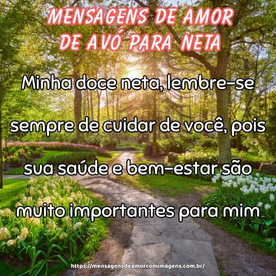 Minha doce neta, lembre-se sempre do quanto você é amada, pois meu amor por você é infinito e incondicional.