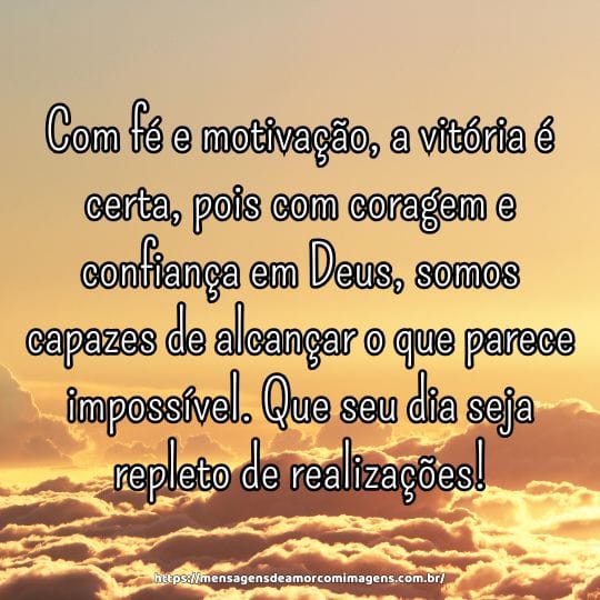 Com fé e motivação, tudo se torna possível, pois é com esses dois pilares que enfrentamos os desafios com coragem e determinação. Que seu dia seja repleto de conquistas!
