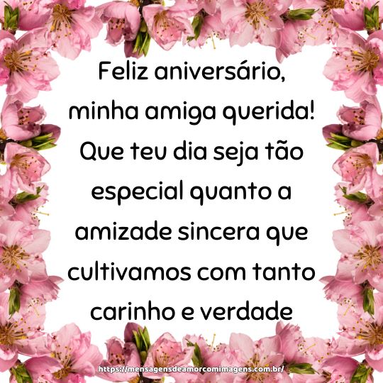 Que neste aniversário você sinta o quanto é amada, pois tua amizade preenche dias com luz e afeto.