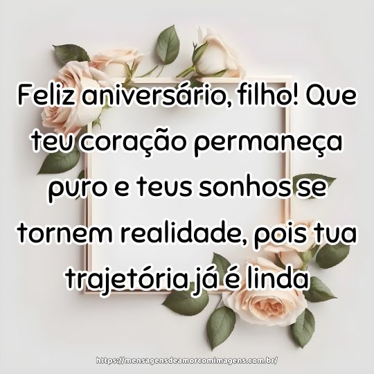 Feliz aniversário, filho amado! Que cada passo seja guiado pelo bem, pois tua essência é feita de amor e esperança.