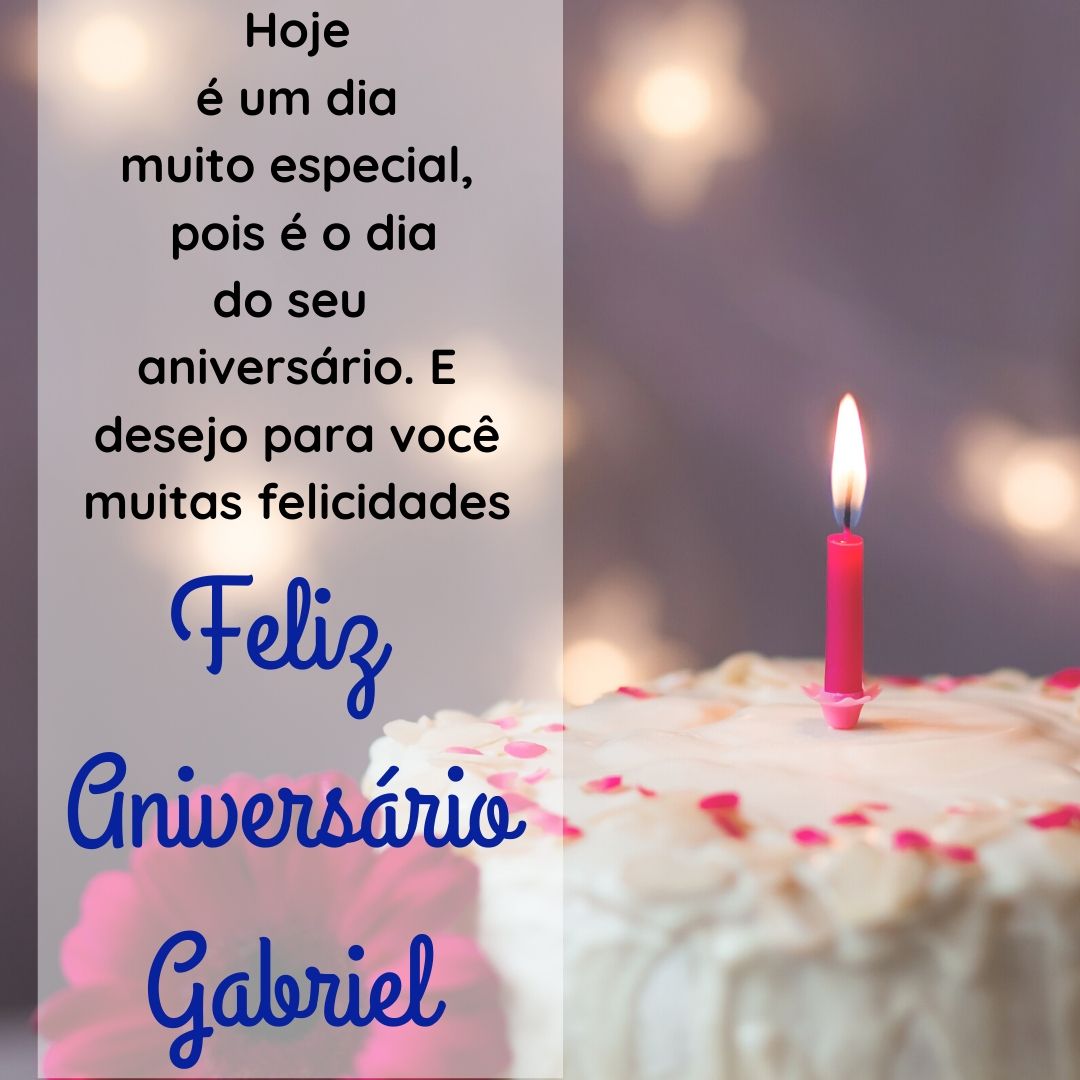 mensagem de parabens e feliz aniversario para gabriel. Hoje é uma data muito querida, pois é seu aniversario Gabriel, por isso quero desejar toda felicidade e sucesso para você. Um feliz aniversario cheio de paz e meus parabens por mais este ano de vida. Viva com motivação e otimismo acreditando sempre no seu potencial.